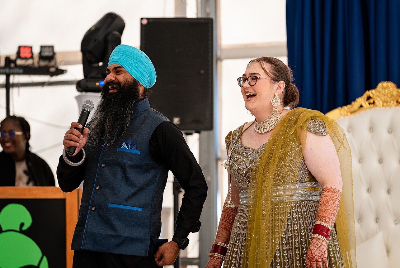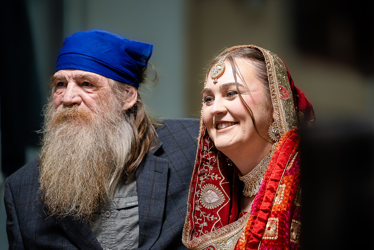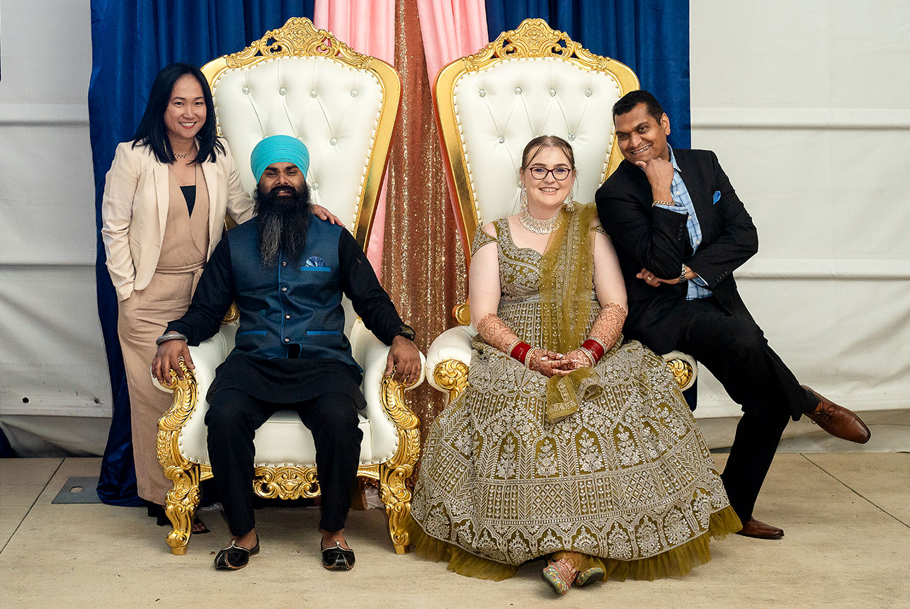 From their home, the celebration moved to the serene halls of an Edmonton temple, where their sacred Sikh wedding ceremony unfolded amidst melodic hymns and heartfelt prayers. Surrounded by loved ones, Emma and Gagandeep exchanged vows that reflected both the beauty of their cultural heritage and the strength of their bond.