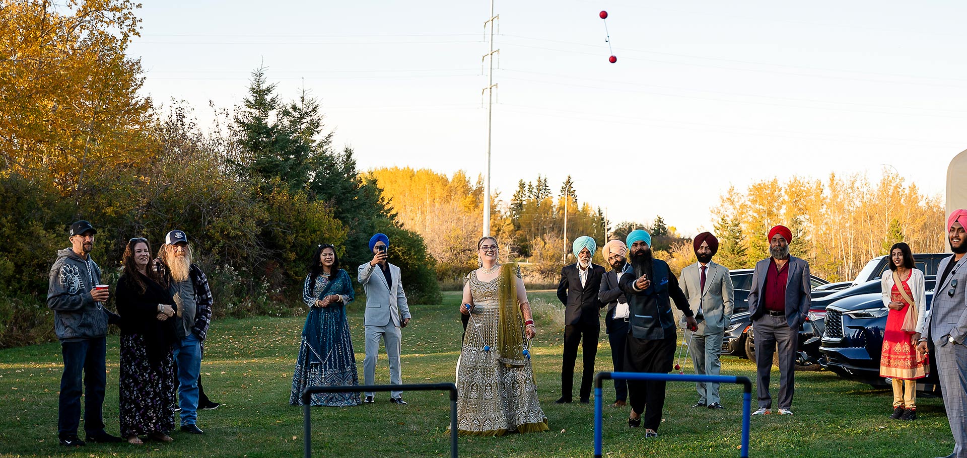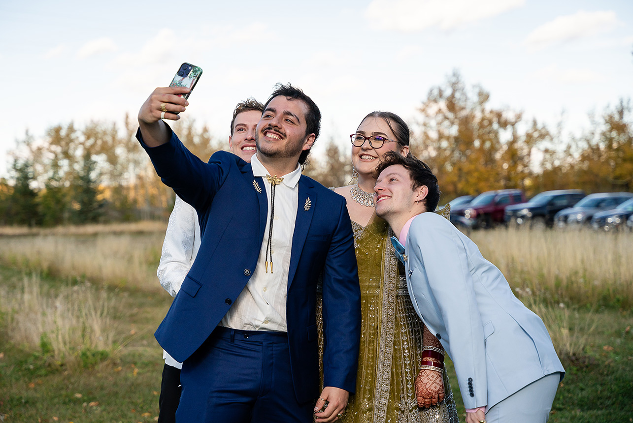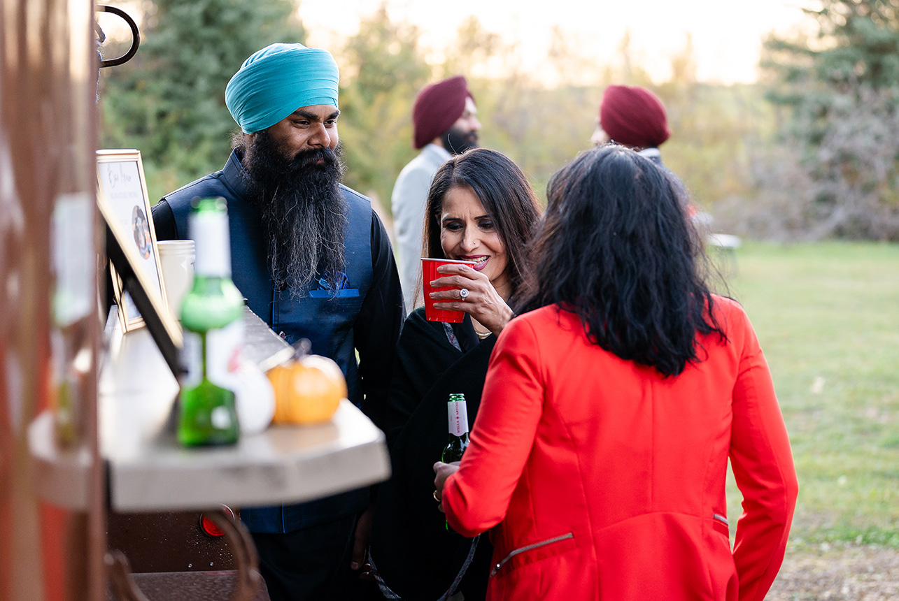 The festivities continued in Sherwood Park, where friends and family gathered for a vibrant reception filled with dancing, laughter, and joyful toasts. The couple’s personalities shone through every detail—from the outdoor mobile bar to the stunning two-layer wedding cake that blended Western elegance with their traditional celebration.