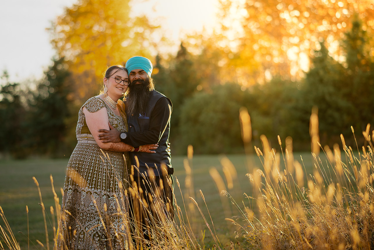 As the sun dipped below the horizon, Emma and Gagandeep shared intimate golden hour portraits in the wild grass fields, their love illuminated by Edmonton’s soft, glowing light. Their wedding was a perfect fusion of cultures, traditions, and timeless memories, beautifully captured from start to finish.