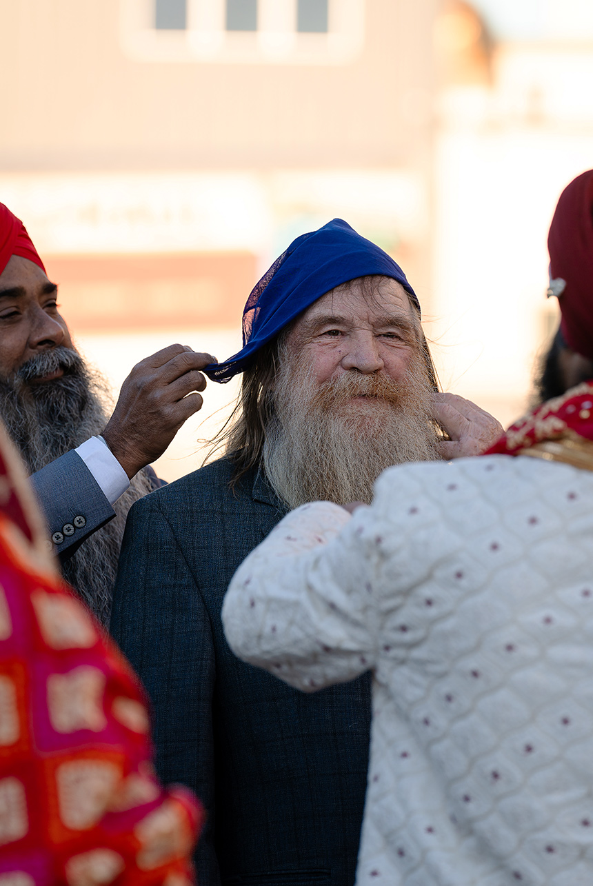From their home, the celebration moved to the serene halls of an Edmonton temple, where their sacred Sikh wedding ceremony unfolded amidst melodic hymns and heartfelt prayers. Surrounded by loved ones, Emma and Gagandeep exchanged vows that reflected both the beauty of their cultural heritage and the strength of their bond.